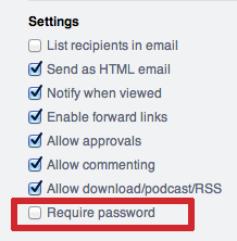 - A password protected presentation option. When you send a presentation, both from Library or Projects, you have the option to require a password for any recipient to see the link. This ensures that even if an end user forwards a link to someone that shouldn't have it unless they have the password it will not be viewable.