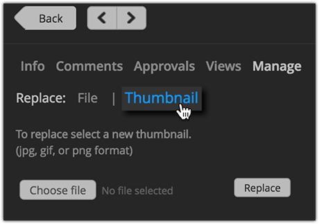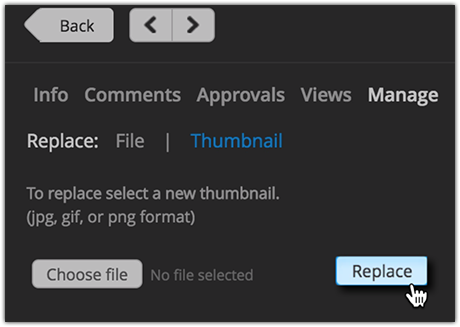 Next to Replace Thumbnail, click Choose File to select your custom thumbnail file.