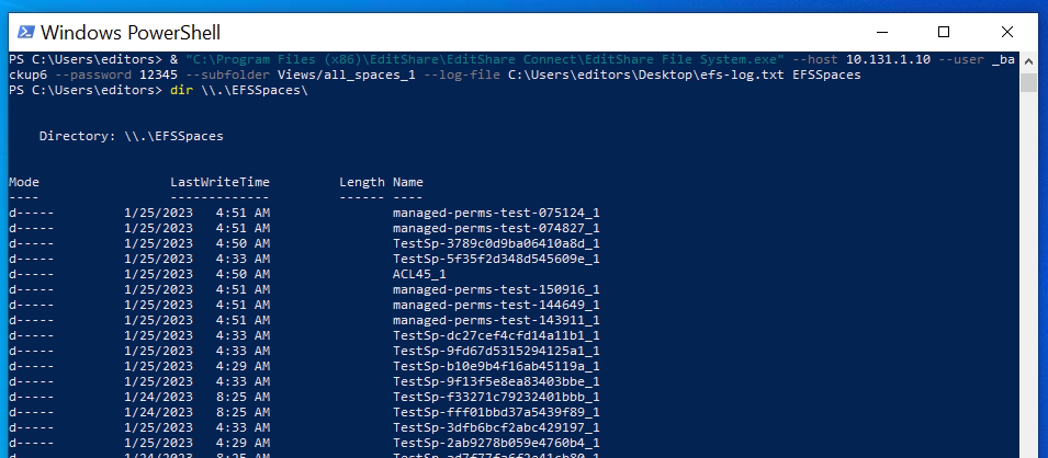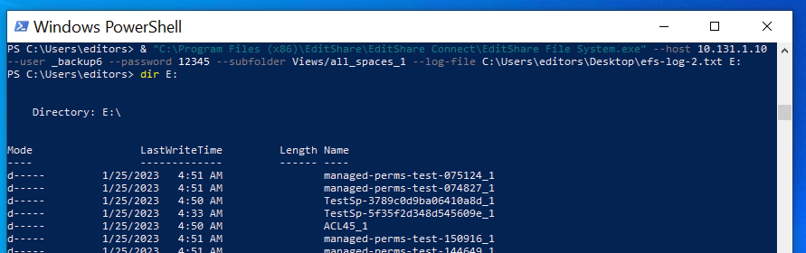 "C:\Program Files (x86)\EditShare\EditShare Connect\EditShare File System.exe" --host --user --password --subfolder Views/all_spaces_1 --log-file