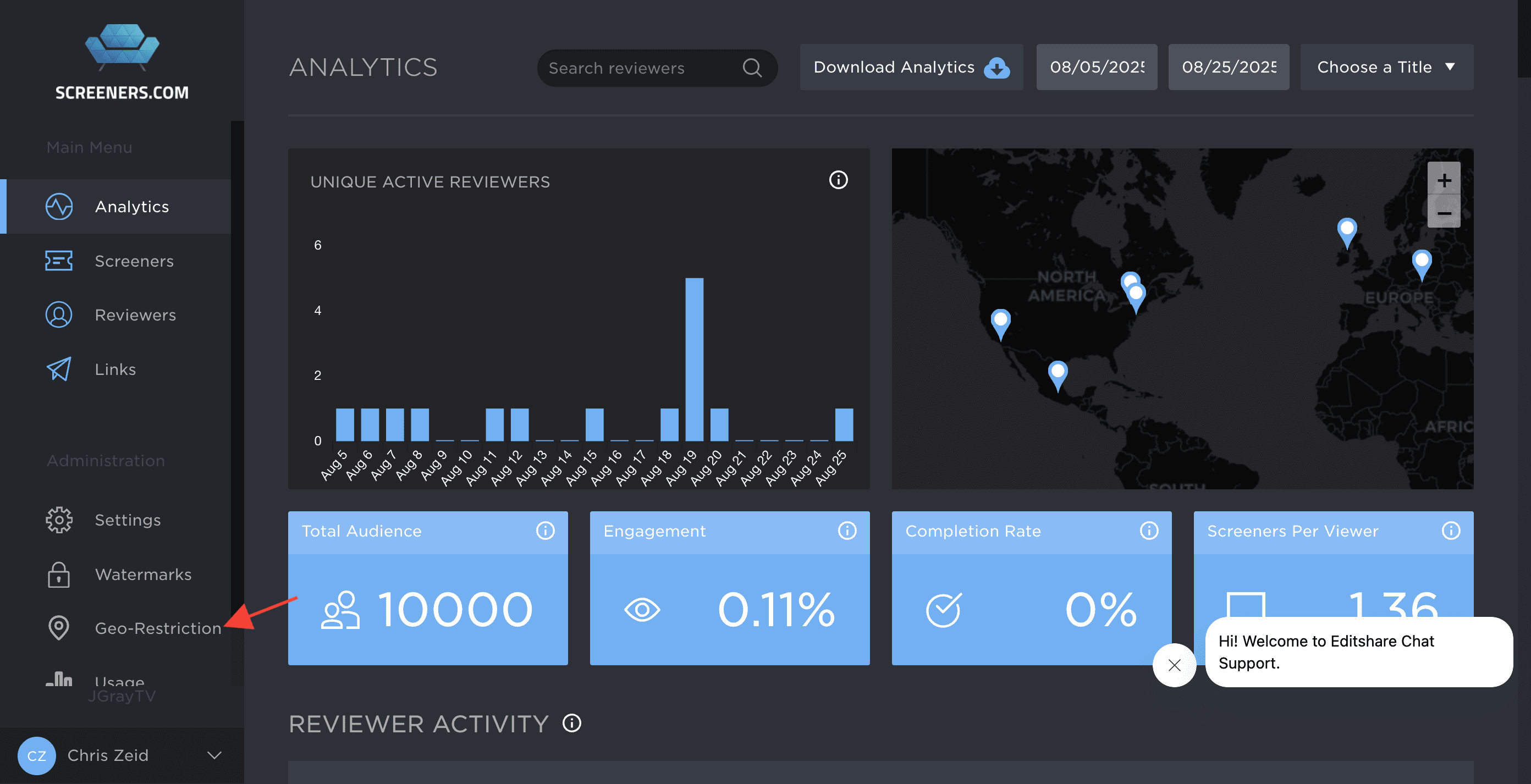 Note: Geo-Restrictions only apply to Viewers and does not apply to Admins.